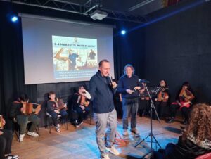 Il maestro Ambrogio Sparagna, etnomusicologo di fama internazionale – venerdì mattina insieme al vicesindaco e assessore al Turismo Giovanni Valerio aveva aperto la due giorni di eventi all’istituto IIS “Fermi-Filangieri” della dirigente scolastica Rossella Monti deliziando con il suo organetto studenti e docenti – ha raccontato diverse curiosità che lo legavano a Lucio. “Ho lavorato con lui tantissimi anni – ha spiegato – Proprio su questa barca abbiamo dato vita a quella che era la ‘Notte della Taranta’ nel 2006, di Melpignano, nel Salentino. Una lunga collaborazione artistica, con tutti brani che ha elaborato per quella edizione che sono nati qui. Lui ha mantenuto sempre uno stile semplice”.