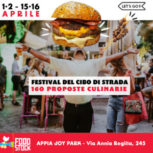 Inizia il conto alla rovescia in vista di Foodstock, il più atteso Festival del Cibo di Strada, che farà tappa nella splendida cornice dell’Appia Joy Park, il nuovo parco multifunzionale di Roma di ben 45.000 mq, sito in Via Annia Regilla 245. Un must per i foodlovers, un evento unico che propone oltre 160 irresistibili proposte culinarie accompagnate da una vasta scelta di birre e vini. I week-end del 1 e 2 aprile e 15 e 16 aprile dalle 10.00 alle 22.00 sarà presentata l’eccellenza del cibo di strada, con un’accurata selezione di street chef, per celebrare i piatti più popolari italiani ed internazionali e una grande varietà di ricette anche vegane e vegetariane. Tante simpatiche cucine tutte rigorosamente su ruota con chef qualificati inonderanno l’aria di profumi, facendo venire l’acquolina in bocca a tutti. Il range di sapori sarà caleidoscopico, annaffiato da birre e cocktail. Sarà possibile gustare prodotti cucinati al momento con materie prime di alta qualità di paesi diversi, di posti lontani ed essere avvolti da tanti sapori.
