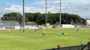 Sconfitta casalinga per l’Aprilia di Mariotti che cade in casa al Quinto Ricci a porte chiuse contro l’Arzachena di Nappi e resta fanalino di coda del girone G di Serie D. Dopo appena 3 minuti l’Aprilia passa in vantaggio: calcio di punizione battuto in area da Murgia, si inserisce alla perfezione Ramceski che batte Fusco per il vantaggio dei padroni di casa. Al 27’ il pareggio dell’Arzachena con il neo entrato Poli che sfrutta una cattiva gestione del pallone dell’Aprilia e firma l’1-1 con un perfetto tiro a giro su cui Siani non può nulla. Al 30’ ci prova Grossi, servito da Ramceski, con Fusco che respinge in calcio d’angolo. Al 41’ Sartor tira a giro con Siani che salva mandando la sfera sul palo. Nella ripresa al 5’ l’Arzachena ad un passo dall’autorete, si salva la squadra sarda e si resta sull’1-1. All’11’ Capuano, servito al limite, ci prova con il destro mettendo a lato. Al 17’ l’Arzachena trova la rete del vantaggio con Pinna che si inserisce bene e sigla la rete del vantaggio sardo. Al 23’ Grossi ci prova su punizione, Fusco devia in corner. Al 29’ cross dalla sinistra di Capuano per Innocenti, conclusione al volo che termina sul fondo. Al 38’ brutta palla persa a centrocampo da Ramceski, riparte in contropiede l’Arzachena che trova la terza rete con Sartor. Non c’è più modo di tornare in partita per l’Aprilia: l’Arzachena vince 3-1 e continua la sua corsa playoff.