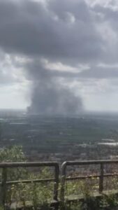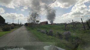 Fiamme e un densissimo fumo nero, alto su per giù una decina di metri, che ha fatto sì che l’intero Agro Pontino e la stessa Latina potessero vederlo.