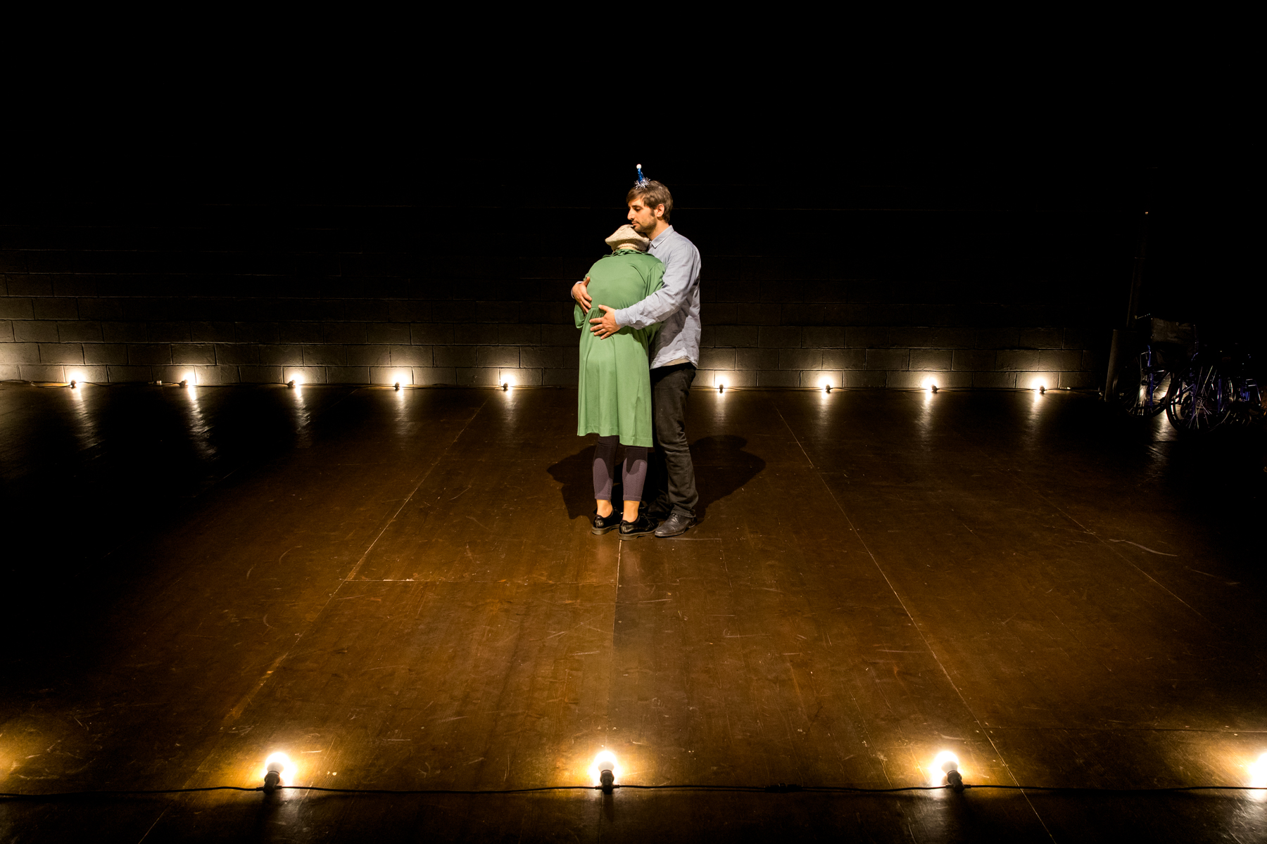Quattro giovani attori, Matilde Buzzoni, Antonio De Nitto, Gloria Giacopini, Matilde Vigna, interpretano tutti i personaggi, vestendo idealmente i panni ora degli uni, ora degli altri, in un continuo carnevale di emozioni, vivendo e trasferendo al pubblico la costante tenerezza che si genera – e talora sconfina in tensione – fra il bisognoso, non sempre consapevole del proprio stato (o disponibile ad accettarlo), e il soccorritore che presta assistenza e talvolta, per frustrazione e sconforto, si intristisce o va in collera. In platea si ride, si sorride e si riflette. È uno spaccato di vita quotidiana, un’opera che affronta il delicato tema della vecchiaia, della perdita di autonomia e della conseguente necessità di accudimento che genera tensioni emotive fra chi avverte il dovere di prestare aiuto e colui che talvolta, per inconsapevolezza o rifiuto della propria condizione, quel soccorso respinge. Fra il pubblico, con un sorriso velato di malinconia, si assiste alla perdita di coscienza dell’anziano e alla perdita di pazienza del giovane. Ma i ruoli si scambiano di continuo sul palco, fra gli interpreti, e si ribaltano le situazioni, con l’anziano che rinsavisce e il giovane che repentinamente invecchia, a emulare l’imprevedibilità della vita, il continuo ribaltamento di stati a cui ciascuno è esposto e dunque a sottolineare anche l’instabilità – oltre alla caducità – del nostro essere e insieme la fragilità della vita.
