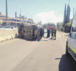 Deve essere stata una manovra azzardata a causare il ribaltamento di un’auto a bordo della quale viaggiavano due persone, entrambe trasportate al Goretti.