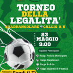 Le forze dell’ordine in campo, il Prefetto e il Questore in prima linea per il calcio di inizio e le scolaresche della Città sugli spalti a tifare per la legalità: tutto pronto a Fondi per il quadrangolare tra Polizia Locale, Guardia di Finanza, Polizia e Carabinieri. La sfida a Calcio a 5, che rientra nel programma ufficiale di Fondi Città europea dello Sport 2023 si terrà il 23 maggio a partire dalle ore 9:00 presso il Palazzetto dello Sport di via Mola di Santa Maria. Non una data casuale dato che martedì ricorre la “Giornata della Legalità”, istituita nel 2002, a quattro anni dall’uccisione del magistrato Giovanni Falcone e della sua scorta, per non dimenticare le vittime di tutte le mafie e sensibilizzare la collettività al contrasto della criminalità mafiosa.Si tratta infatti di un’iniziativa fortemente voluta dal Prefetto di Latina Maurizio Falco il quale già lo scorso anno, nella stessa giornata, ha preso parte ad un importante convegno che ha coinvolto e portato a profonde riflessioni gli studenti della Città di Fondi. A premiare i vincitori della sfida, ma simbolicamente tutti gli uomini e le donne che ogni giorno si spendono, talvolta rischiando la vita, per la sicurezza del territorio, il sindaco Beniamino Maschietto e l’assessore allo Sport Fabrizio Macaro.IL PROGRAMMA