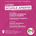“Nell’invitare i cittadini e le cittadine a questo importante appuntamento – concludono – ringraziamo i relatori e le relatrici che interverranno. Gianmarco Proietti che, proprio insieme a noi, ha ipotizzato di portare a Latina questo progetto quando era Assessore con delega alla scuola dell’amministrazione Coletta; Clelia Allocca che darà il suo punto di vista su una scuola non solo aperta ma anche, e soprattutto, senza più disuguaglianze; Claudia Pratelli che a Roma ha messo in piedi uno dei casi più virtuosi, a livello nazionale, del progetto scuole aperte”.