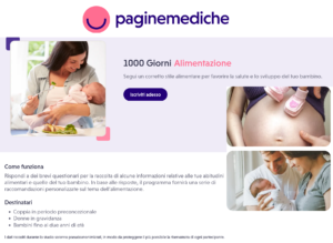 Tutte le coppie in periodo pre-concezionale, le donne in gravidanza e i genitori con bambini fino ai due anni di età che vorranno aderire alla ricerca dovranno: scaricare l’app Paginemediche e registrare il proprio profilo selezionare il programma 1000 giorni Alimentazione dalla sezione Cliniche scegliere la fase specifica dei 1000 giorni nella quale si trova il partecipante rispondere ai questionari seguire le raccomandazioni sul comportamento alimentare più adeguato al proprio profilo personale dall’area Apprendimento. L’arruolamento dei partecipanti terminerà a fine settembre 2023. È possibile aderire al progetto scaricando l’app di Paginemediche disponibile sugli store Apple e Google Play. –> https://bit.ly/3Mk1gwu