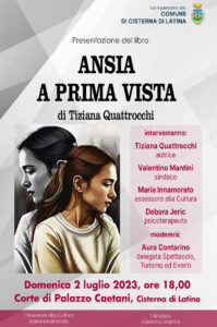 Questo passato difficile ha lasciato dei segni profondi, rendendo Tiziana particolarmente vulnerabile allo sviluppo di problemi psicologici tra cui l’ansia, che le procurava terribili attacchi di panico, non la faceva uscire di casa, le offuscava la mente, il contatto fisico la terrorizzava. Ma la Tiziana ha dimostrato una forza inaspettata nell’affrontare anche questa prova e ha chiesto aiuto ad una psicoterapeuta che, come scrive nel suo libro, le ha “insegnato la differenza tra vivere e sopravvivere”. L’appuntamento con un libro emozionante e in grado di dare speranza è per domenica 2 luglio alle ore 18,00 nella corte di Palazzo Caetani. Interverranno l’autrice Tiziana Quattrocchi, il sindaco Valentino Mantini, l’assessore alla Cultura Maria Innamorato, la psicoterapeuta Debora Jeric. Modererà Aura Contarino, delegata Spettacolo, Turismo ed Eventi.