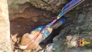 L’equipaggio del Drago 140 e la squadra del Comando di Latina, proveniente dal Distaccamento di Terracina, hanno trovato l’animale incastrato e sofferente in una cavità naturale della profondità di 4 metri.