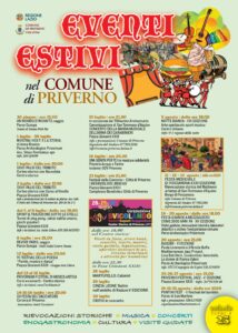 Un palinsesto di iniziative culturali, sostenute dal Comune, che continua ad animare la Città di Priverno e le sue location a cielo aperto con musica, teatro, arte, danza, spettacoli, enogastronomia, sport e tradizione.
