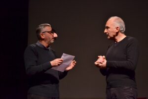 umoristico che tanto ha informato di sé la cultura teatrale prima e televisiva poi del XX secolo, privilegiando la dimensione metateatrale come materiale della scrittura scenica. Attraverso una serrata alternanza di brani teatrali, vengono portate sulla scena alcune fra le più divertenti proposte: dai Fratelli De Rege al duo Chiari-Campanini, da Eduardo a Dario Fo, da Benni a Proietti, indiscussi protagonisti di questa forma di teatro a torto definita “minore”, di cui lo spettacolo ricostruisce la storia.