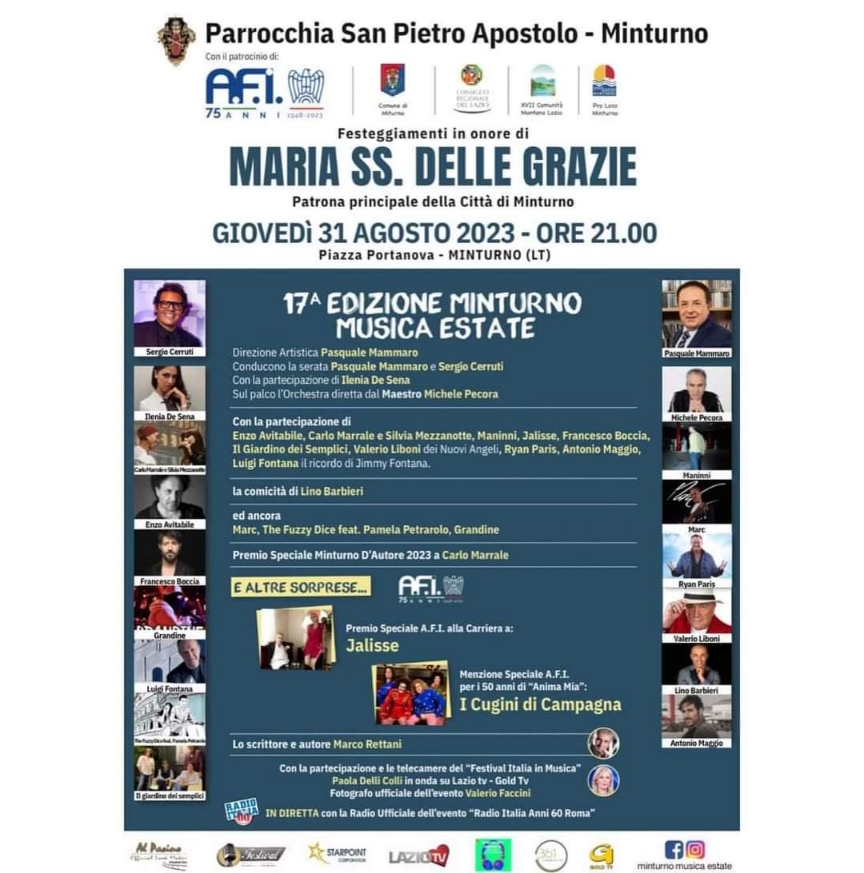 Minturno Musica Estate 2023 Ultimo aggiornamento: 29 Agosto 2023 14:44 Redazione Pubblicato 29 Agosto 2023 Condividi