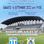 Si inaugurerà, pertanto, sabato prossimo, 16 settembre alle ore 19, la tribuna – e con essa tutte le altre strutture precedentemente non a norma – dello Stadio Bartolani, finalmente restituito funzionante e sicuro alla comunità di Cisterna. Dopo un intervento di saluto da parte del sindaco Valentino Mantini e dell’assessora alla Sport Emanuela Pagnanelli, ci sarà l’esibizione della Banda musicale “Città di Cisterna” e delle majorette “White Flower” di Pontinia. Seguirà, alle 19.30 l’incontro amichevole tra il Cisterna Calcio e l’A.S.D. Trevi.