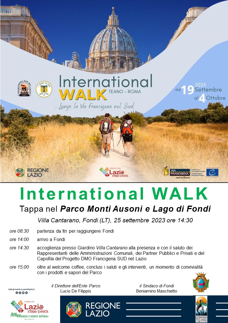 Oggi, lunedì 25 settembre, nei giardini di Villa Cantarano, l’Ente Parco Naturale Regionale Monti Ausoni e Lago di Fondi, in sinergia con il Comune di Fondi, accoglierà ufficialmente, al loro arrivo a Fondi, il folto gruppo di pellegrini provenienti da varie parti del mondo che, partiti da Teano e diretti a Roma, partecipano all’International Walk 2023 lungo il percorso dell’antica via Francigena. Il pellegrinaggio, promosso dall’associazione Gruppo dei Dodici e dalla DMO Francigena Sud nel Lazio, di cui è partner anche l’Ente Parco, vuole essere un cammino di fede e di spiritualità, ma anche un’occasione di incontro tra culture diverse e di promozione della conoscenza dei luoghi, della storia e delle tradizioni del nostro territorio. Fautore e pioniere del progetto di recupero e di piena rifunzionalizzazione del tratto della via Francigena che da Roma conduce a S. Maria di Leuca fu, a partire dalla metà degli anni 2000, l’ingegnere Alberto Alberti, fondatore del Gruppo dei Dodici. È soprattutto grazie alla sua grande passione e alla sua instancabile tenacia che oggi la via Francigena nel Sud è una splendida realtà, tanto da aver ottenuto nel 2019 il riconoscimento di “itinerario culturale europeo” da parte del Consiglio d’Europa. Presso l’UNESCO, inoltre, è all’esame degli organi competenti la candidatura della via Francigena tutta, da Canterbury a S. Maria di Leuca, a patrimonio culturale dell’umanità.