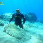 La componente subacquea della Stazione Navale di Civitavecchia, in collaborazione con la Soprintendenza Archeologia, Belle Arti e Paesaggio per le Province di Frosinone e Latina, ha recuperato alcuni significativi reperti nei fondali dell’Isola di Ventotene, tra cui un’anfora romana di epoca repubblicana perfettamente conservata. Le Fiamme Gialle Aeronavali di stanza a Ventotene, venute a conoscenza della presenza di reperti archeologici sommersi in una zona circoscritta nella parte sud dell’Isola, caratterizzata da bassi fondali e molto frequentata dal traffico diportistico, notiziavano immediatamente il funzionario territorialmente competente della anzidetta Soprintendenza – Dott. Carlo Molle – per pianificare una ricognizione subacquea e il recupero dei reperti più a rischio, evitando così una facile depredazione da parte di trafficanti senza scrupoli.