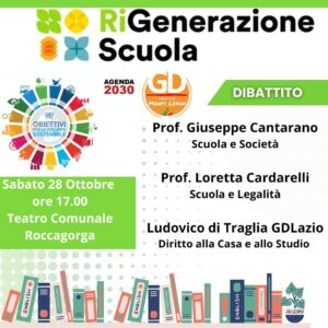 RiGenerazione Scuola. Questo il titolo dell’incontro organizzato dai Giovani Democratici per il prossimo sabato 28 ottobre alle ore 17.30 presso il teatro comunale di Roccagorga.