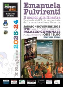 Si terrà sabato 4 Novembre alle ore 18 presso l’aula Consiliare della Casa Comunale il secondo appuntamento della stagione di Confronti. Ospite l’architetto e insegnante di Storia dell’arte Emanuela Pulvirenti con il suo libro “Il Mondo alla Finestra”.