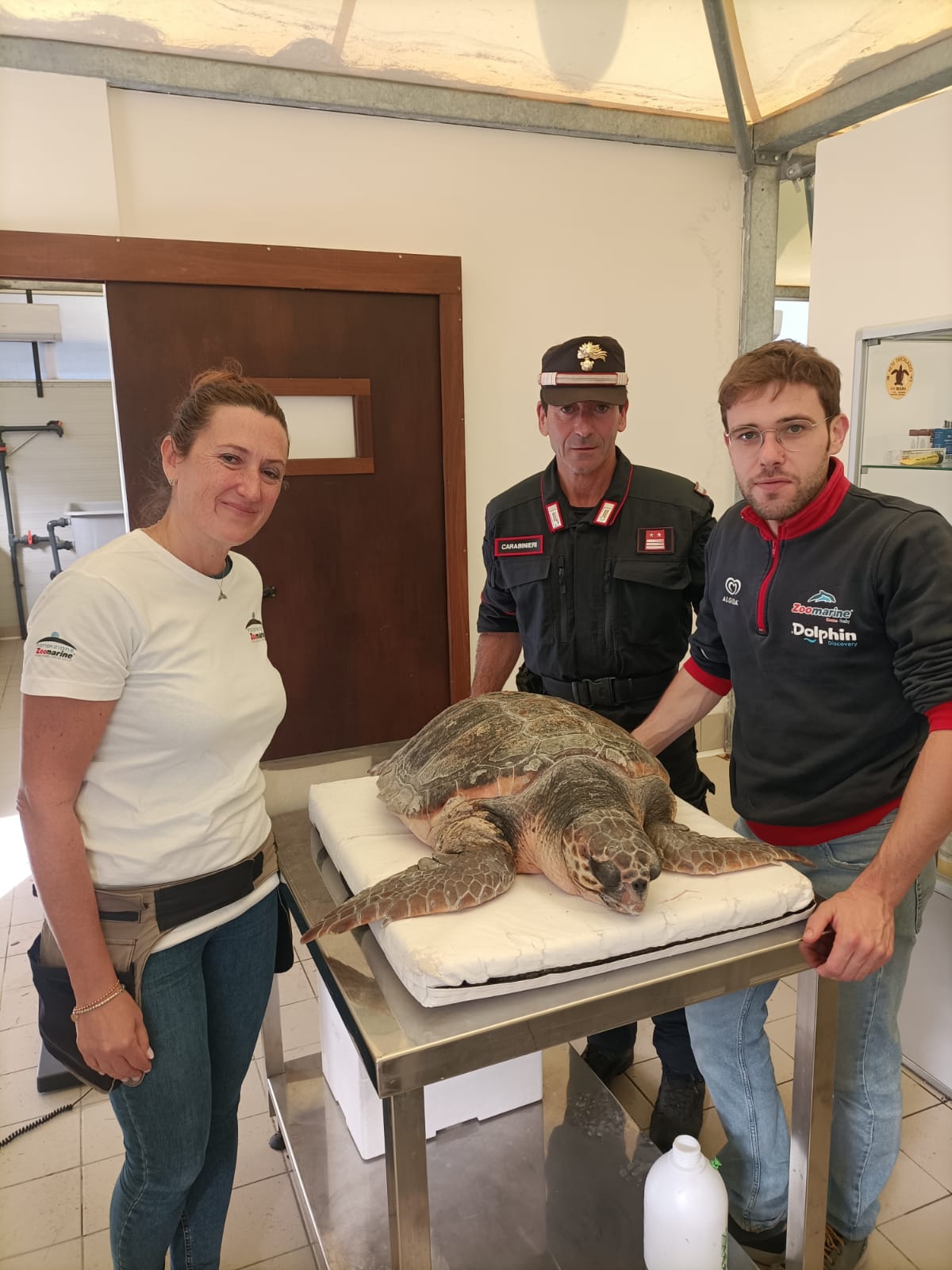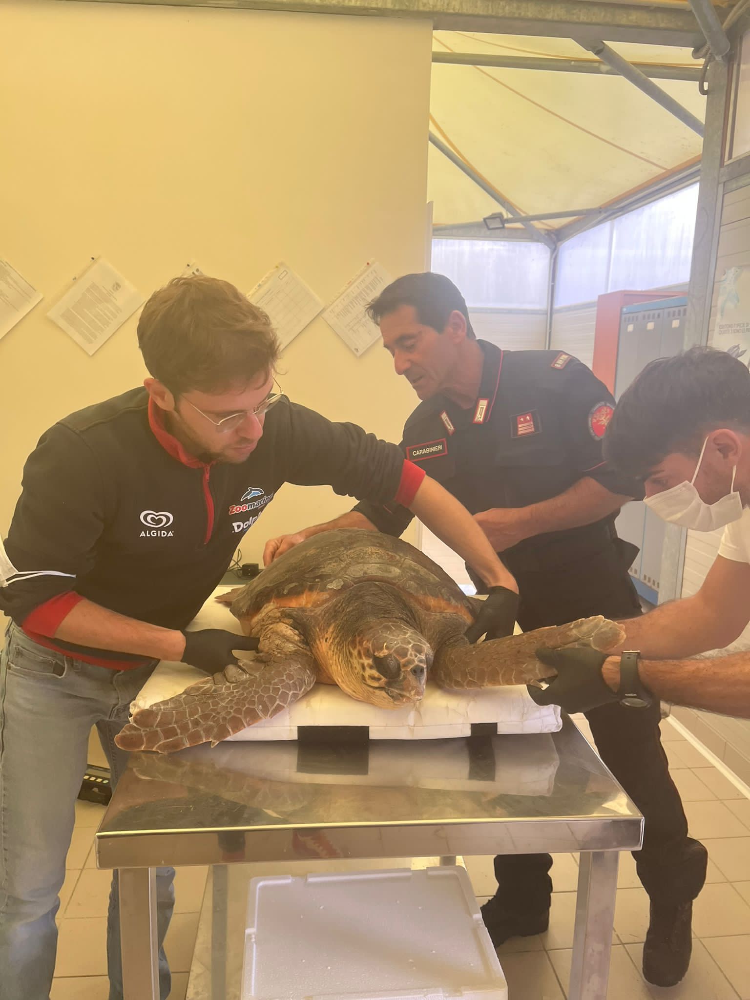 di reti e due taniche vuote in plastica che ne ostacolavano i movimenti ed il galleggiamento oltre ad impedirne la regolare alimentazione. L’animale dopo il recupero è stato trasportato prima presso il CRAS di Fogliano per un esame preliminare e subito dopo, come richiesto dal referente dell’Associazione “TARTALAZIO”, consegnato al Centro di 1^ Soccorso Tartarughe Marine di Fondazione “ZOOMARINE” di Torvajanica per le cure del caso ed il recupero.