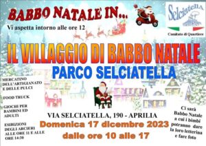 Il Comitato di quartiere ‘Selciatella’ ha organizzato per domenica 17 dicembre dalle 10 alle 17 il Villaggio di Babbo Natale. Al Parco Selciatella, oltre al mercatino artigianale e delle pulci, Babbo Natale aspetterà i bambini con le letterine e per le foto, il tutto attorniato da giochi per bambini ed adulti, dall’esibizione degli arcieri alle ore 11 e alle 14,30 e, dulcis in fundo, l’arrivo dei Babbo Natale in Vespa previsto intorno alle ore 12.