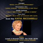 Al Convegno seguirà un omaggio a Maria Callas con un’esibizione del Soprano Lirico Pop Amalia Toboso Castanera che eseguirà due brani in ricordo della doppia origine, greca e americana, della “Divina Callas” e la lettura di lettere e versi di Pier Paolo Pasolini indirizzati a Maria Callas recitati dagli Attori Gaetano Marsico e Domenico Maria Silvestri, entrambi vincitori del Premio “DONNE D’AMORE” 2023. Guest Star dell’Evento, la grande soprano KATIA RICCIARELLI, alla quale saranno conferiti il Premio Internazionale “Donne d’Amore”2023 per l’impegno nel Sociale e il Premio WELLA PROFESSIONALS alla Bellezza e al Glamour. Inoltre, riceveranno il Premio “Donne d’Amore”: l’on. Martina Semenzato, Parlamentare della Repubblica e Presidente della commissione bicamerale d’inchiesta contro i femminicidi (sezione politica);Massimo Basile, Editor & Founder di “MB MEDIA GROUP” (Sezione Comunicazione) ; Maria Antonia Spartà, Vice Questore di Roma (Sezione Enti Pubblici); Sabrina Carreras, Giornalista RAI (Sezione Giornalismo); Laura Sgro’, avvocatessa esperta di crimini efferati (Sezione Imprenditoria femminile); Luisa Trotta by WELLA PROFESSIONALS (Sezione Aziende); Simone Pacifici, avvocato (Sezione Imprenditoria); Francesco Pio Urbano, avvocato (Sezione Imprenditoria); Giancarlo Sirolesi, fotografo (Sezione Fotografia Premio “Luigi Giordani”); Dante Mariti, Direttore di MELOS INTERNATIONAl, titolare del “CALLAS TRIBUTE PRIZE NY” che si svolgerà a New York il 7 e 8 Marzo 2024, conferirà il prestigioso riconoscimento a Massimo Basile e ad Anton Giulio Grande (Stilista Internazionale e Presidente della Film Commission Calabria) creando, per la prima volta nella storia del Premio, un gemellaggio tra New York e Roma.