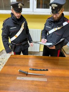 Nel corso della serata dell’11 dicembre 2023, a Sabaudia, i Carabinieri della locale Stazione traevano in arresto un 50enne, responsabile della tentata rapina ad un esercizio commerciale del luogo. L’uomo, entrato nell’attività commerciale, minacciando con un coltello dalla foggia di katana il proprietario del locale, tentava di farsi consegnare delle bibite.