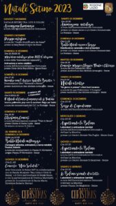 Nel giorno di S.Stefano è previsto un concerto di musica classica con flauto e chitarra, mentre il 29 la serata sarà dedicata al teatro all’auditorium San Michele Arcangelo. Domenica 31, ultimo giorno dell’anno, il tradizionale “Sasso di Capodanno”, mentre il ciclo degli eventi, ad inizio 2024, si concentreranno con l’ultima giornata di festa dedicata all’Epifania, con iniziative previste mercoledì 3 e giovedì 4 gennaio che si concluderanno con la grande festa per la Befana prevista, ovviamente, il 6 gennaio 2024.