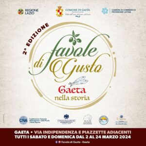 Dalle luci ai sapori, in una favola ricca di storia e tradizioni del territorio. L’Amministrazione Comunale sta programmando la 2ª edizione di “Favole di Gusto”, manifestazione che intende valorizzare l’intera filiera dell’enogastronomia locale. Nel corso dei secoli, infatti, essa trovò sviluppo attraverso la commercializzazione dei prodotti della Campania Felix e degli altri paesi del Mediterraneo che Gaeta effettuava: un’intensa e costante attività marinara che influenzò fortemente il rapporto con cibo e modo di vivere. L’obiettivo è di trattare il tema del “gusto” nella sua accezione più ampia, valorizzando quelle che sono state e sono tuttora le attività umane e i loro risultati, simbolo di bellezza. “Favole di Gusto” assume così un ruolo di promozione di stili e qualità di vita, tema oggi di rilevante importanza sociale. La manifestazione vuole inoltre riscoprire le antiche tradizioni locali, non solo culinarie, ma anche culturali: un connubio di socialità e di interazione tra il cibo e la società che lo promuove.