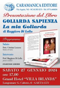Sabato 27 gennaio, alle 17:00, il Grand Hotel “Villa Irlanda” (Lungomare Caboto, 6) ospiterà la presentazione del libro “Goliarda Sapienza. La mia Goliarda”, di Ruggiero Di Lollo, edito da Caramanica Editore. Un ricordo affettuoso di una grande amicizia nata negli anni ’70, tra l’autore – per tanti anni professore di storia dell’arte al Liceo scientifico “Enrico Fermi” di Gaeta, pittore e scultore -, la scrittrice e suo marito Angelo Pellegrino, quando la coppia iniziò a frequentare Gaeta, vivendo a stretto contatto, condividendo la scoperta della città, dei borghi limitrofi e delle isole di Ponza e Palmarola. Insieme hanno formato un terzetto inseparabile, e Di Lollo, unico testimone di viaggi, aneddoti e avventure, ha scritto queste pagine arricchendole con una raccolta di foto del suo archivio, per far conoscere più da vicino a tutti Goliarda Sapienza. Sarà un appuntamento emozionante, per ascoltare i ricordi delle persone che l’hanno conosciuta, anche proprio grazie a Ruggiero Di Lollo, per il quale, come ha sottolineato più volte, l’amicizia con Goliarda è stata “il regalo più bello che Angelo mi ha fatto negli anni ’70, uno dei più belli della mia vita, ed io ti ho regalato agli amici”.