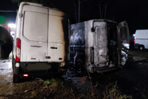 Giunti sul posto, i militari operanti accertavano l’incendio di n.3 furgoni dei quali uno andato completamente distrutto mentre gli altri due erano stati parzialmente danneggiati nella parte anteriore della carrozzeria. Sul posto giungevano anche una squadra dei Vigili del Fuoco di Pomezia che provvedeva a spegnere l’incendio.