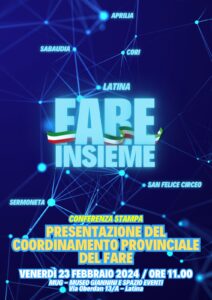 Un metodo che privilegia un’azione che nasce dall’impegno della gente, dei cittadini, in uno spazio dove si lavora per divisione di competenze ed obiettivi a breve, medio e lungo periodo, dove c’è un forte contributo di progetti e idee innovative ma che sono tutte strettamente ancorate alla fattibilità ed alla concretezza dei risultati. È la politica tra la gente che continua a crescere e che dopo tanto lavoro portato avanti dal movimento raggiunge, con questo appuntamento, un importante riconoscimento come la creazione di una rete tra civici che presto, ne siamo sicuri, sarà estesa a tutta la provincia di Latina. Nella giornata di venerdì, saranno presenti esponenti delle città di Aprilia, Cori, Sabaudia, San Felice Circeo e Sermoneta che hanno deciso di sposare questo progetto, fondato su grandi ambizioni e sulla voglia di lavorare per far crescere le città interessate e di conseguenza migliorare il benessere e la qualità della vita dei cittadini. Fin dalla sua nascita Fare Latina è sempre stato un movimento vicino alla comunità ed è per questo che vuole raggiungere il grande obiettivo di allargare e diffondere la politica del Fare anche ad altre città, in modo da creare una rete intercomunale tra movimenti, associazioni e persone unite nel segno del Fare.
