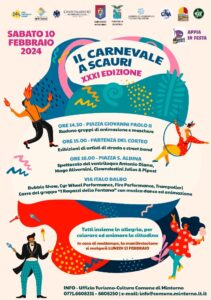 Si alza il sipario sulla XXXI edizione del “Carnevale a Scauri”, organizzato dal Comune di Minturno, patrocinato dalla Provincia di Latina e dalla Camera di Commercio Frosinone-Latina. L’appuntamento è in programma sabato grasso 10 febbraio. Una sfilata di gruppi di animazione, street band e di artisti di strada caratterizzerà il pomeriggio festoso, indirizzato ai piccoli ed ai grandi.