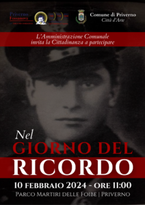 Nel corso della cerimonia verrà omaggiato nel ricordo, Antonio Picozza, Agente di Polizia, nato a Priverno il 15 Luglio 1923, ucciso e infoibato il 25 Maggio 1945, a Basovizza (Trieste).