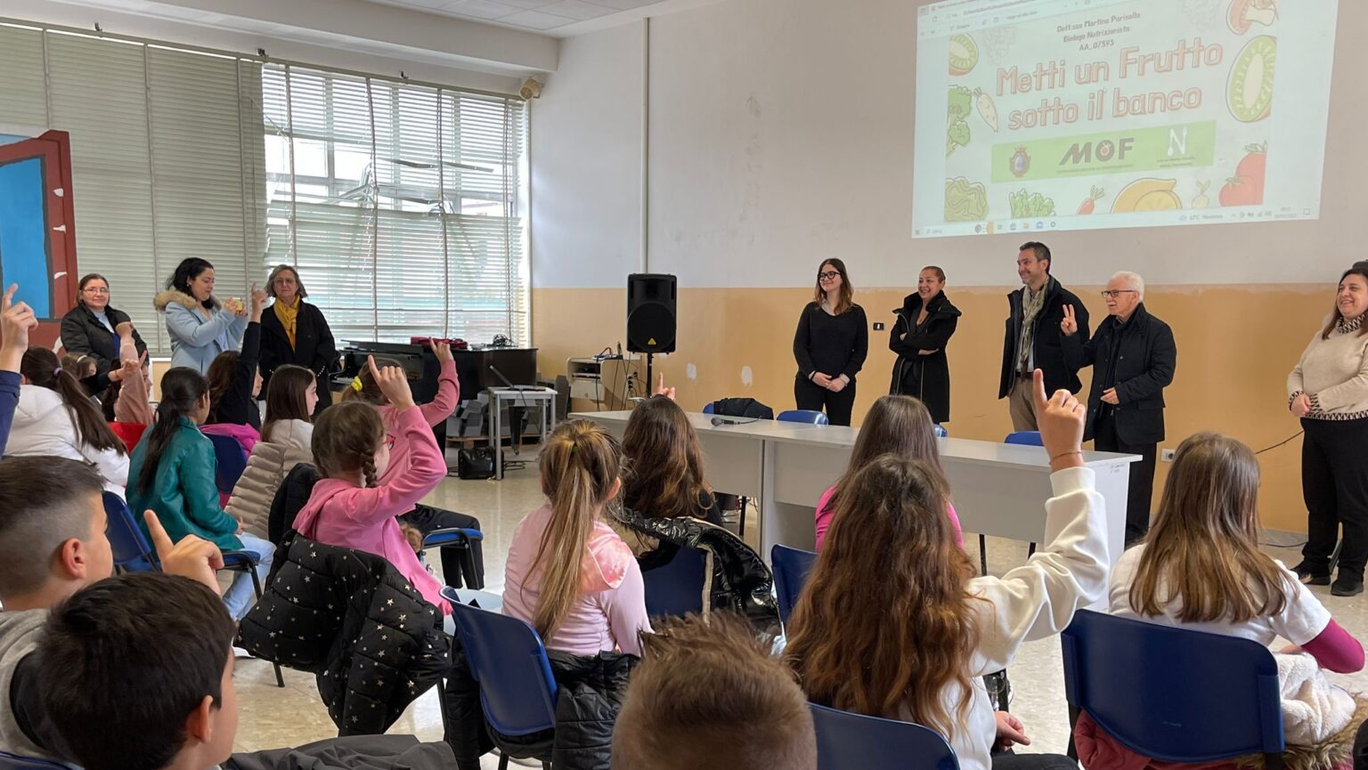La terza edizione del concorso “Metti un frutto sotto il banco” dedicato agli studenti delle scuole secondarie di primo grado della città di Fondi, è già in corso. L’iniziativa, realizzata da MOF e Comune di Fondi, si propone di sensibilizzare gli studenti sull’importanza cruciale della frutta e della verdura nell’alimentazione quotidiana, nonché sulla sicurezza alimentare e gli obiettivi di sviluppo sostenibile dell’ONU. L’iniziativa prevede una serie di incontri, che avranno luogo nelle scuole a partire dal mercoledì 27, durante i quali la dottoressa Martina Parisella, biologa nutrizionista illustrerà ai ragazzi l’importanza di una dieta equilibrata e sana. Saranno proposte attività didattiche interattive, volte a coinvolgere attivamente gli studenti nel comprendere il ruolo fondamentale che la frutta e la verdura giocano nel mantenimento di uno