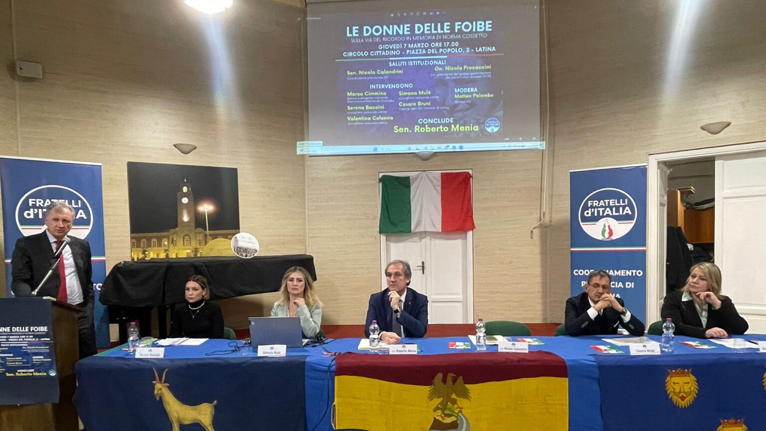 “Vorrei ringraziare chi ha avuto l’intuizione di organizzare questo incontro, ossia le consigliere comunali di Fratelli d’Italia e il capogruppo Cesare Bruni. Soprattutto però voglio rimarcare il mio orgoglio nell’avere potuto ospitare qui a Latina il mio collega, il Senatore Roberto Menia, il cui impegno su questa fase tragica della nostra storia non ha eguali. E’ stato grazie a lui che, nel 2004, è stato istituito il Giorno del Ricordo, che ci permette ogni anno di commemorare questa tragedia. Diversi passi in avanti, verso la verità storica, sono stati fatti anche durante questa prima fase di legislatura: penso ad esempio al disegno di legge, fortemente voluto dal Ministro Sangiuliano e ora in discussione alla Camera, che porterà all’istituzione del museo delle Foibe. C’è ancora una macchia, tuttavia, che pesa come un macigno sulla nostra Nazione, ossia l’onorificenza di gran cavaliere della Repubblica con cui è stato insignito il maresciallo comunista Tito. Un’onta contro la quale mi auguro fortemente si possa prima o poi trovare la convergenza politica utile alla sua revoca. Perché spero ormai sia chiaro a tutti che quella delle foibe non è una tragedia di parte, è una tragedia italiana”. Questo un passaggio del saluto istituzionale del Senatore Nicola Calandrini, coordinatore provinciale di Fratelli d’Italia Latina, che ha aperto il convegno dal titolo “Le Donne delle Foibe”.