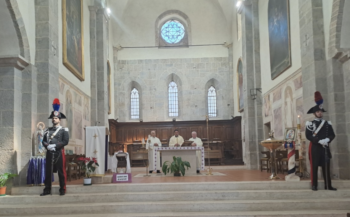 La celebrazione eucaristica, resa particolarmente emozionante dal coro polifonico del Comando Provinciale dei Carabinieri di Latina, è stata officiata dal Cappellano Militare della Scuola Allievi Marescialli e Brigadieri di Velletri, Don Eugenio Campini e dal Priore dell’Abbazia di Valvisciolo, Don Andrea Rossi.