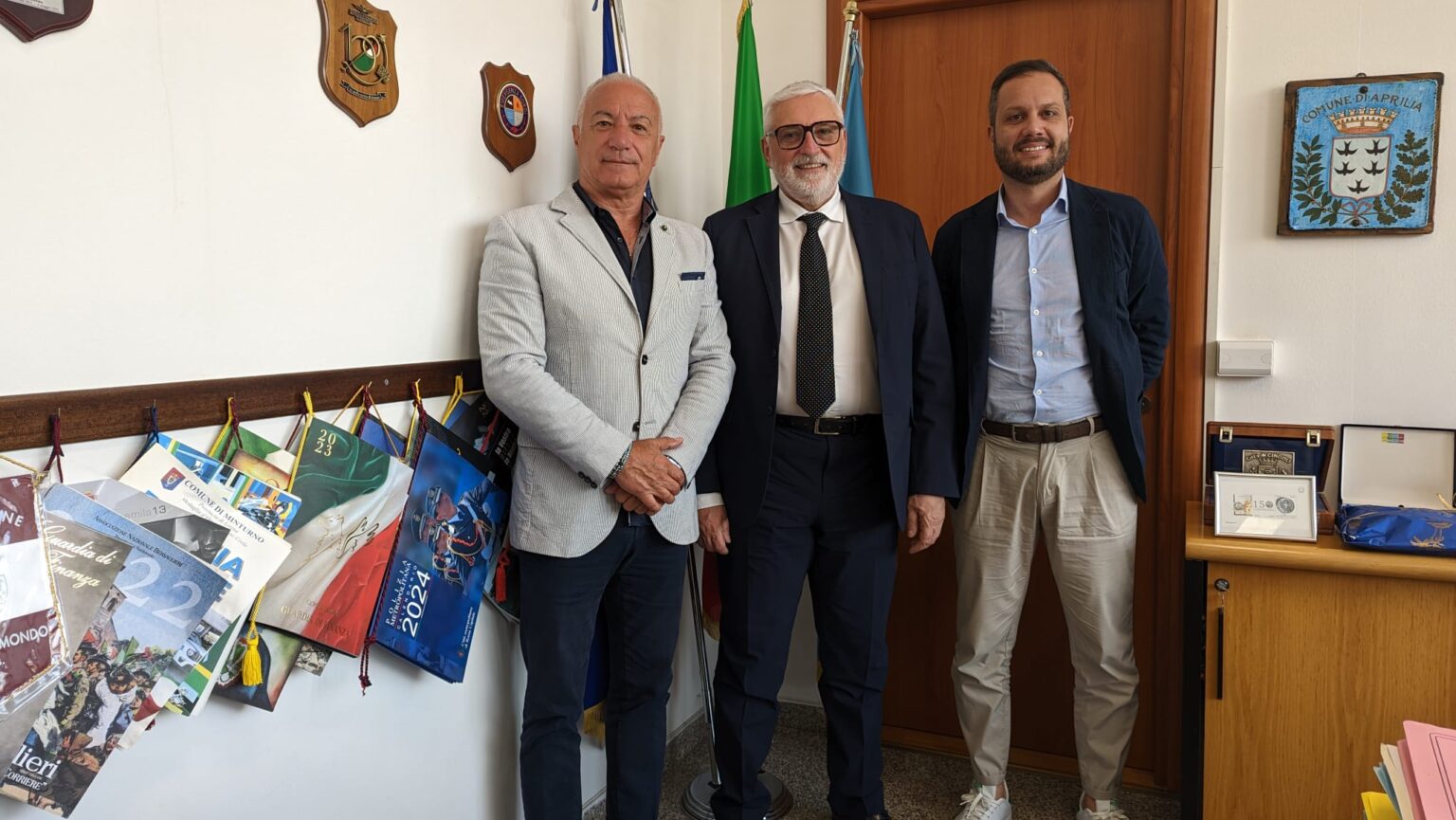 Questa mattina il sindaco di Aprilia Lanfranco Principi ha firmato le lettere d’incarico con le quali ha attribuito al consigliere Matteo Grammatico la delega allo sport e al consigliere Vincenzo La Pegna la delega alla Protezione Civile.