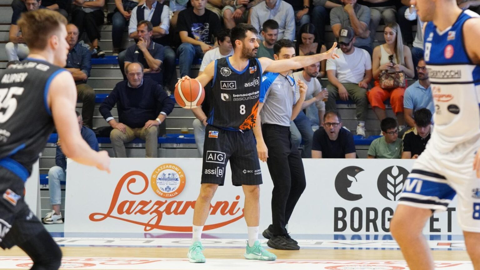 Benacquista Assicurazioni Latina Basket: Mayfield 14, Amo n.e., Parrillo 22, Romeo 6, Zangheri n.e., Mladenov, Cicchetti 13, Rapetti n.e., Moretti 4, Alipiev 17, Borra. Coach Sacco. Vice Cavazzana. Assistente Tricarico.