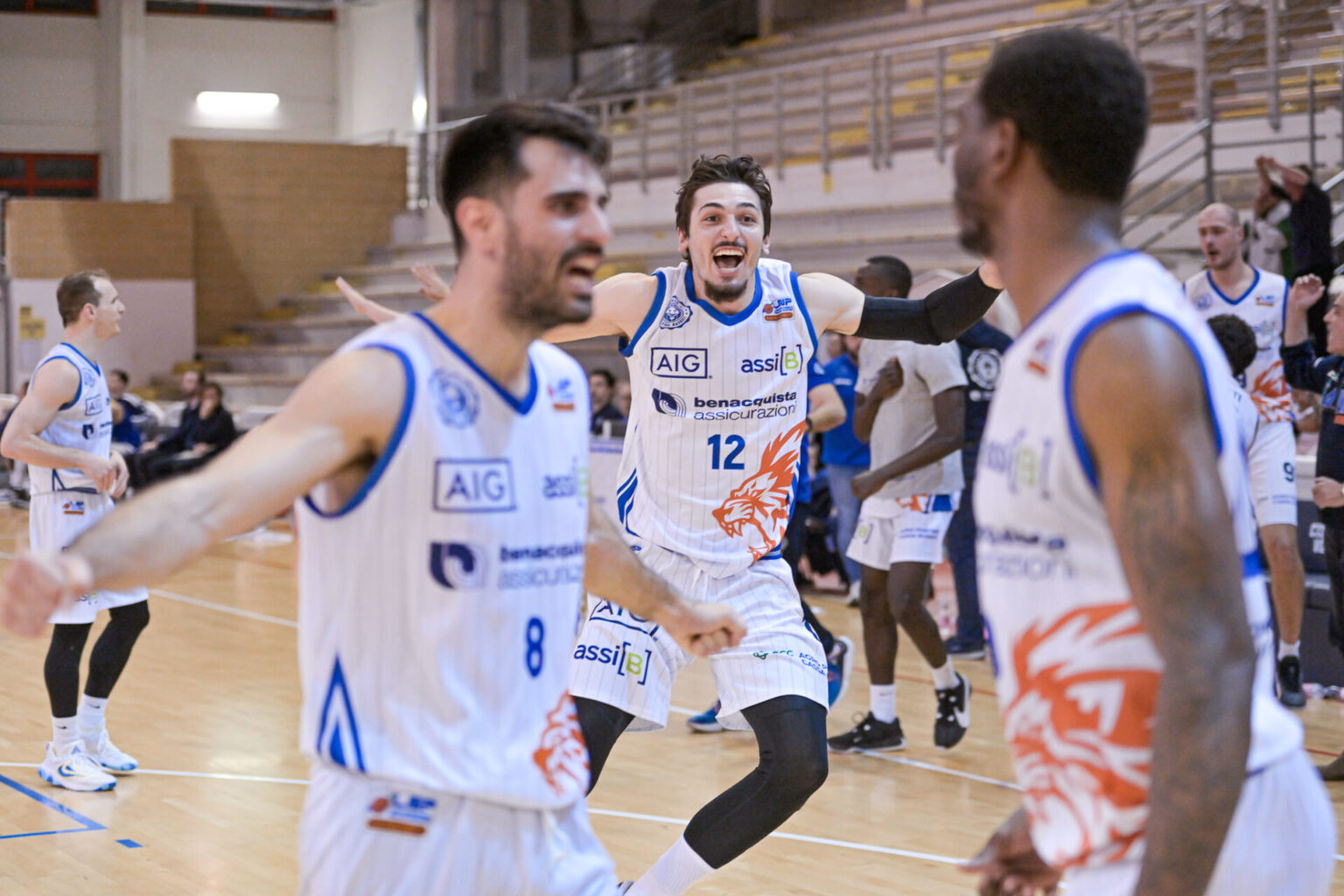 Benacquista Assicurazioni Latina Basket: Mayfield 11, Amo n.e., Parrillo 13, Romeo 11, Zangheri, Mladenov 8, Cicchetti 4, Collazo n.e., Rapetti n.e., Moretti 9, Alipiev 9, Borra 6. Coach Sacco. Vice Cavazzana. Assistente Tricarico.