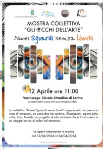 Sarà un momento di grande arricchimento per tutti coloro che vorranno partecipare, grazie alla sensibilità di tutti i ragazzi impegnati nella mostra. Le opere rimarranno esposte dal vernissage del 12 aprile fino a mercoledì 24 aprile. L’evento vede il supporto e il sostegno da parte dell’associazione Latina Città di Borghi e di Mare, oltre al patrocinio del Comune di Latina.