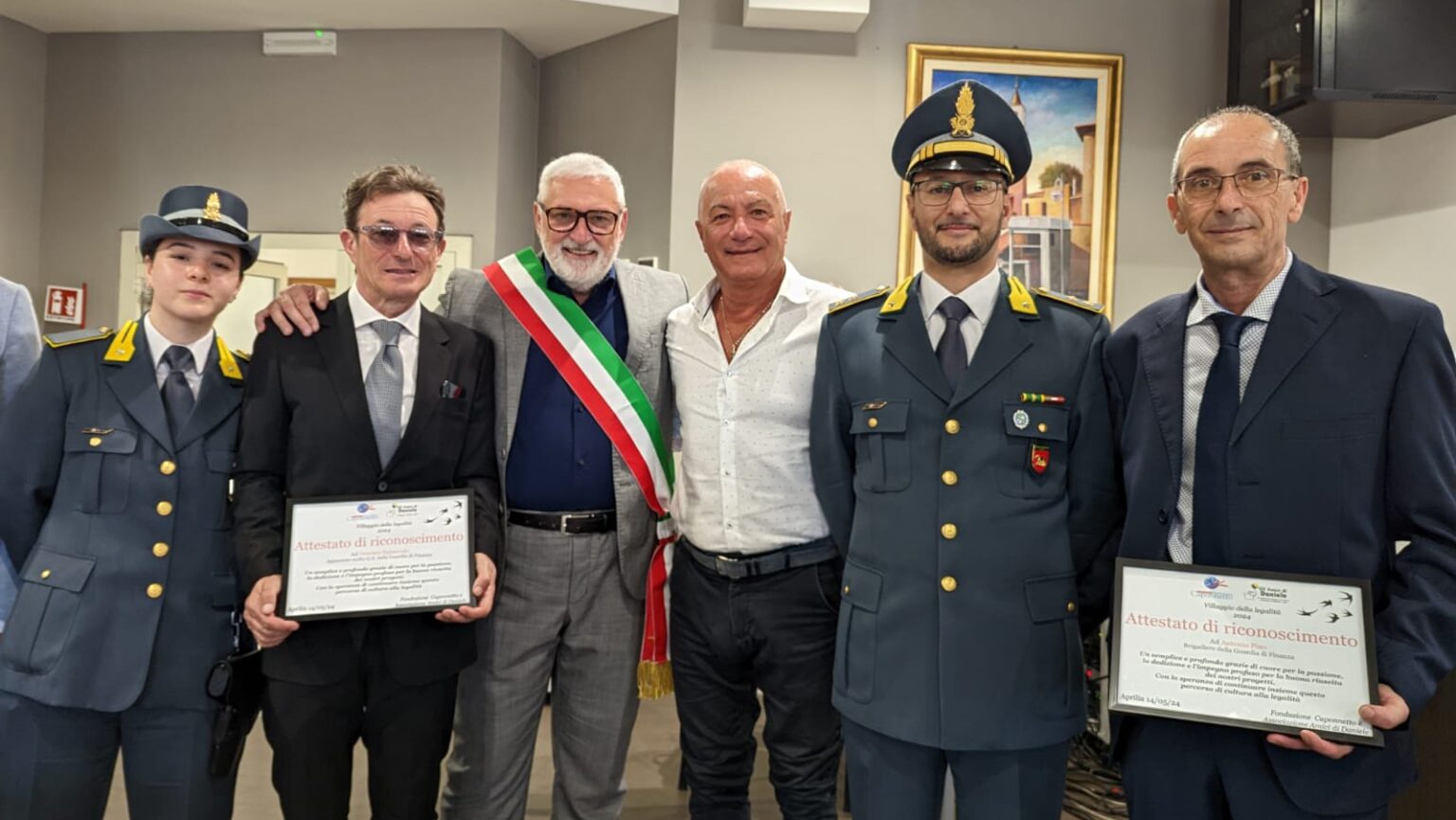 Presso l’aula consiliare “Luigi Meddi”, il Primo Cittadino e il consigliere incaricato alla sicurezza e protezione civile Vincenzo La Pegna, hanno proceduto alla consegna degli attestati di riconoscimento che le associazioni Antonino Caponnetto e Gli amici di Daniele hanno voluto attribuire per particolari meriti agli esponenti delle forze dell’ordine e alle associazioni di volontariato. Le benemerenze sono state attribuite all’Associazione Nazionale Carabinieri di Aprilia e Fiumicino, al Commissario della Polizia di Stato Giulio Bernardini, al Maggiore dell’Arma dei Carabinieri Alberto Guidobaldi, all’Ispettore della Polizia di Stato Dosolina Petronelli, all’Appuntato scelto della Guardia di Finanza Gennaro Siglioccolo, al Brigadiere della Guardia di Finanza Antonio Pino.