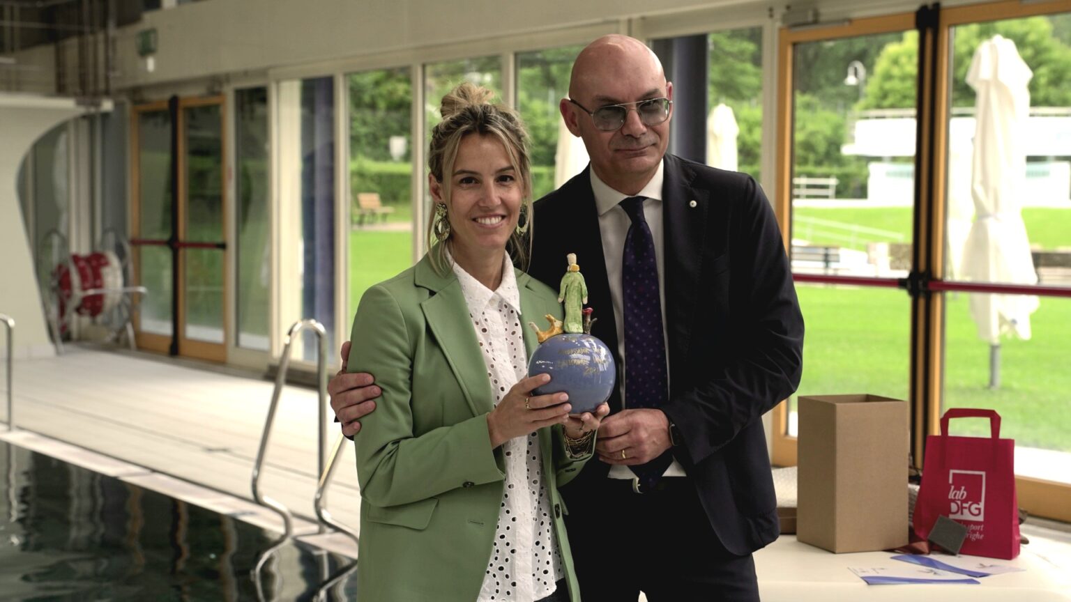 La cerimonia di consegna del riconoscimento di “Ambassador” a Tania Cagnotto si è svolta oggi nella sede della Piscina coperta “Karl Dibiasi” di Bolzano. Alla campionessa, quale simbolo di Ambassador, è stata consegnata un’opera d’arte di Kerameion degli artisti di fama nazionale Antonio Carullo e Mario Ottocento.