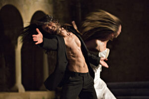 apparentemente identiche e tuttavia distinte che entrano gradualmente in rapporto tra loro. Queste figure gemelle sono – simbolicamente – l’emanazione di due istanze psichiche all’interno dello stesso soggetto: lo spazio scenico si scopre essere