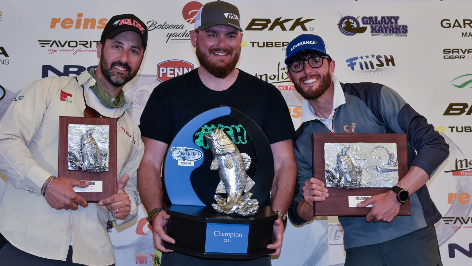 È il bulgaro Milenko Stoychev ad aggiudicarsi l’ambito trofeo della settima edizione della competizione sportiva Internazionale dedicata alla spigola, “Branzino The Challenge”, ad aggiudicarselo dopo un’estenuante gara giocata sulle due lagune, sul gradino più alto del podio c’è salito in lacrime con 504 punti, al secondo posto il campione uscente, il salernitano Gianmarco Sansone che ha totalizzato 468 punti e al terzo posto Salvatore Bisogno con 465 punti. Vincitore del Big Sea Bass Fiiish Trophy della settima edizione di “Branzino The Challenge”, con una preda di 64 cm, il friulano Fabiano Bertoia che nella classifica generale si è piazzato al 12°posto. Due i tipi di premiazione previsti da “Branzino The Challenge”, una per la performance individuale l’altra per i team, sul podio toscani, friulani, veneti e salernitani. Al terzo posto, sul gradino più basso del podio con 771 punti complessivi al meglio delle cinque catture individuali, il team Bolsena Yachting 1 ovvero Andrea Cavallini e Matteo Paoletti. Il secondo posto se lo è aggiudicato il Team MassaBen cioè Davide Sartori e Fabiano Bertoia che hanno totalizzato complessivamente 860 punti. Al primo posto, con 933 punti totali, il Team SeabasSeekers al secolo e Gianmarco Sansone e Salvatore Bisogno.