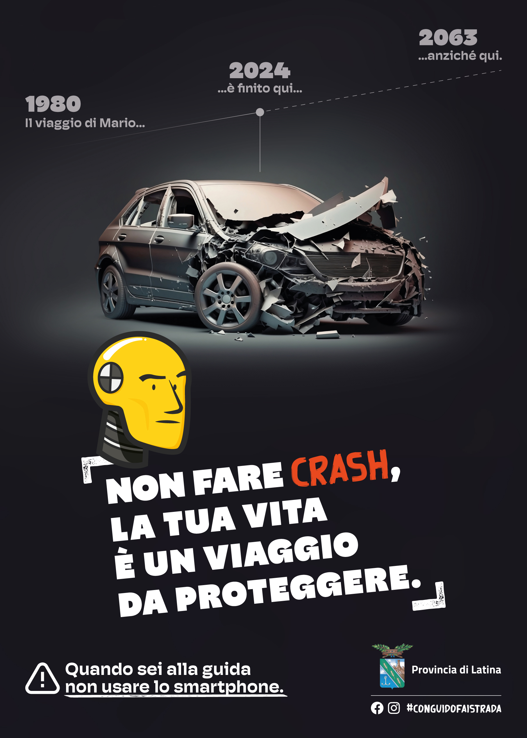 “Il nostro obiettivo non è solo quello di diffondere un messaggio impattante, ma soprattutto di guidare i cittadini verso una maggiore consapevolezza nell’uso dei mezzi di trasporto, perché in gioco c’è sempre la vita”, ha dichiarato l’ente promotore. “Ecco perché abbiamo scelto come messaggio positivo di campagna “Non fare crash, la tua vita è un viaggio da proteggere”. La campagna prende spunto da dati preoccupanti relativi alla sicurezza stradale nel territorio della provincia di Latina: nel corso dell’anno 2022 (ultimi dati disponibili, fonte Istat), si sono verificati 1.744 incidenti, con un aumento del 15,3% rispetto all’anno precedente. Questi incidenti hanno causato la perdita di 56 vite umane e ferito 2.535 persone. Particolarmente allarmanti sono i dati relativi alle fasce d’età più a rischio, con una prevalenza di vittime tra gli over 65 e i giovani tra i 15 e i 29 anni. I conducenti rappresentano la maggior parte delle vittime e dei feriti negli incidenti, seguiti dalle persone trasportate e dai pedoni. Altrettanto significativi sono gli orari e i giorni più critici: il 78,5% degli incidenti avviene tra le 8 e le 21, ma l’indice di mortalità raggiunge valori preoccupanti durante le ore notturne, soprattutto il venerdì e il sabato sera.