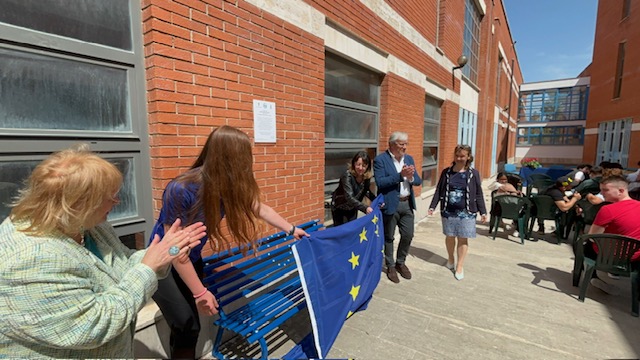 Quello di oggi è un gesto simbolico che vuole servire, appunto, a raccogliere l’entusiasmo dei più giovani e, grazie a loro, affrontare quelle sfide del cambiamento tutti insieme da Sabaudia verso l’Europa e dall’Europa verso il futuro. La delegata allo Sportello Europa ha poi posto all’attenzione degli studenti l’importanza di partecipare attivamente a progetti ed iniziative di mobilità per l’apprendimento all’estero segnalando due importanti iniziative, il portale europeo per i giovani e l’Eurodesk Italy grazie alle quali trovare opportunità, programmi e risorse messe a disposizione dei giovani dall’Unione europea. All’inaugurazione è stato presente anche il Sindaco di Sabaudia, Alberto Mosca, il quale ha tenuto una breve lezione di educazione civica sull’ importanza dell’Europa. Per la riuscita di questa iniziativa si ringraziano in particolare la Dirigente scolastica professoressa Miriana Zannella, la professoressa Paola Carelli, tutti gli insegnanti dell’istituto, gli studenti che hanno partecipato all’evento ed il Consiglio Comunale della Città di Sabaudia che all’unanimità ha deliberato l’installazione della panchina europea.