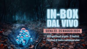 Torna In-Box dal Vivo, fase finale di selezione del bando In-Box 2024/25 dedicato alla valorizzazione e promozione del talento emergente nel panorama teatrale. L’evento si svolgerà dal 23 al 25 maggio e intende essere non solo un momento di confronto per addetti ai lavori ma anche una festa teatrale aperta a tutta la città. Il Progetto è sostenuto dal Comune di Siena, dalla Regione Toscana, da Fondazione Toscana Spettacolo Onlus, dall’Università di Siena, ed è riconosciuto dal Ministero della Cultura.