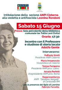 La sezione ANPI Cisterna sabato sarà intitolata alla “piccola vedetta partigiana” Leonina Rondoni.