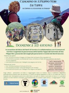 Le associazioni Amici del Cammino di San Filippo Neri e Azione Cattolica San Filippo Neri di Esperia, Emozioni in Cammino ASD e Le Ciaole di Formia, La Lecina di S. Andrea del Garigliano, in collaborazione con il Comune di Formia, annunciano con gioia l’organizzazione di un pellegrinaggio a piedi sul monte Redentore e all’Eremo di San Michele Arcangelo, nella tappa più panoramica del Cammino di San Filippo Neri.