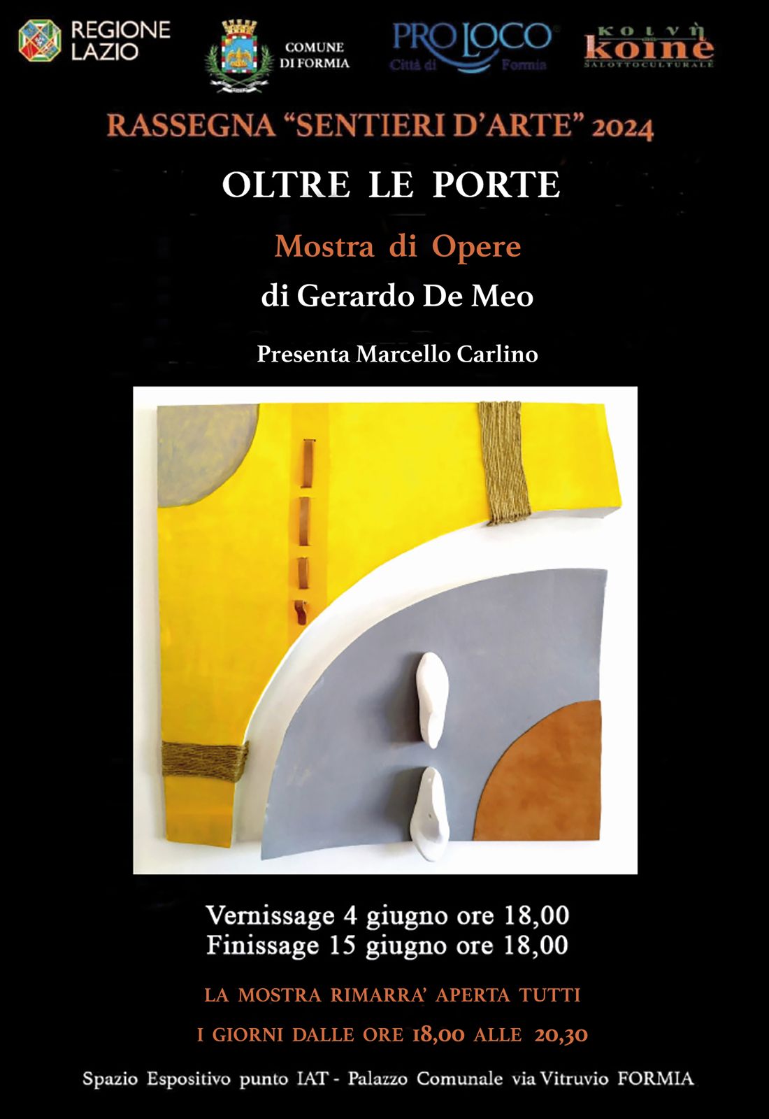 Ha ricevuto numerosi riconoscimenti e prestigiose critiche, con opere esposte sia in Italia che all’estero. Autore di varie monografie storiche e artistiche, promuove anche eventi culturali per valorizzare il suo territorio. Sebbene ancorato alla tradizionale scultura, De Meo presenta un linguaggio moderno e personale. Ama rappresentare a tutto tondo: per la statuaria inizialmente si è ispirato a Emilio Greco, e per i bassorilievi a Manzù. Artista versatile e creativo, tratta il bassorilievo come se fosse un dipinto, delineando figure con rapide pennellate, sottolineando espressioni ed esaltando la gestualità. Nella statuaria, si distingue per la ricercatezza dei soggetti e per la morbidezza dei panneggi. L’attenzione che De Meo mostra per i personaggi contemporanei caratterizza una scultura profondamente partecipe del proprio tempo. Recentemente, la sua ricerca artistica si è evoluta in un linguaggio più semplice ma carico di significati aggiuntivi. “Oltre le Porte” è il titolo della mostra che si inaugurerà il 4 giugno (ore 18:00) all’interno dello Spazio espositivo del Punto IAT, al piano terra del Palazzo Comunale di Formia. L’evento vedrà la presenza dell’autorevole critico d’arte Marcello Carlino, che nella sua presentazione afferma: