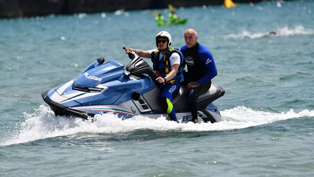 Già venerdì 24 maggio, gli equipaggi sono stati impegnati in occasione della 3° edizione Steelman, noto evento sportivo comprendente diverse discipline e gare ibride in versione 12 o 24 ore, che ha coinvolto oltre 300 partecipanti provenienti da tutto il mondo. Quel giorno gareggiavano circa 60 kayak ed oltre 120 nuotatori che necessitavano di un cordone di sicurezza predisposto unitamente ad altri enti. Durante la gara l’equipaggio delle moto d’acqua della Polizia di Stato – composto da due operatori in servizio di ordine pubblico brevettati anche per il soccorso in mare -, è dovuto intervenire in favore degli occupanti di un kayak che gareggiava nei 5000 metri, perché lo scafo danneggiato ha iniziato ad imbarcare acqua e rischiava di affondare. Il giorno seguente, è stata fornita assistenza a circa 150 nuotatori, 10 dei quali hanno mostrato difficoltà dovute alle avverse condizioni meteo e per tale motivo sono stato presi a bordo e condotti a terra in tutta sicurezza.