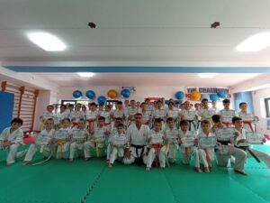 L’esame è cominciato con l’esibizione del Kihon che ovviamente in base al colore della cintura diventava sempre più intenso e articolato di tecniche. Quando tutti hanno terminato il loro kihon si svolta la seconda fare dell’esame ovvero la dimostrazione del Kata e anche in questa fase d’esame, più si saliva di colore della cintura più kata dovevano essere esibiti davanti ai due tecnici. Come ultima fase d’esame gli atleti hanno indossato i guantini da combattimento e si sono stati valutati nel Kumite. Novità in questa sessione d’esame è stata la doppia prova che hanno sostenuto le cinture marroni, oltre a svolgere le loro prove pratiche hanno dovuto praticarsi anche su come si dirige una sessione d’esame. Alla fine delle prove tutti gli atleti sono stati protagonisti della cerimonia di cambio cintura. Una giornata indimenticabile e un momento di gioia che rimarrà indelebile nei loro ricordi.