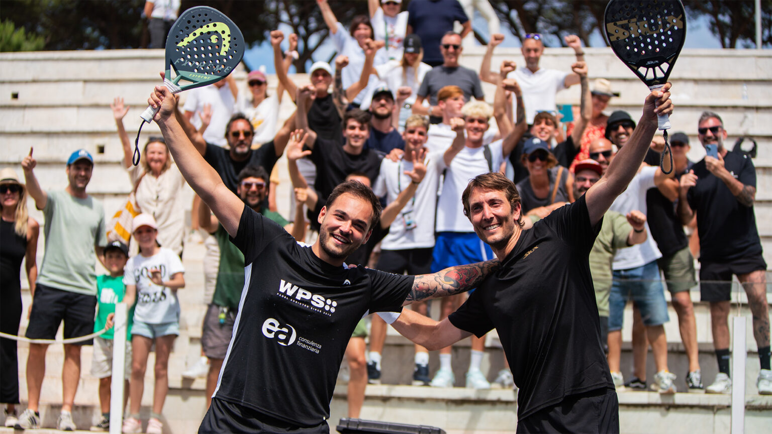 L’urlo di gioia in campo accompagnato dall’esplosione di esultanza sugli spalti del Pietrangeli. La prima impresa italiana al BNL Italy Major Premier Padel arriva da Michele Bruno e Simone Iacovino, atleti romani doc che proprio a casa loro, nel tempio della racchetta mondiale, conquistano il tabellone principale in uno degli appuntamenti clou del calendario Premier Padel. Nella seconda giornata di qualificazioni sono servite due ore (con il punteggio di 4-6 6-3 6-4) per battere la talentuosa coppia spagnola formata da Anton Sans e David Gala, quest’ultimo classe 2006 vincitore dell’oro ai Giochi Europei di Cracovia e considerato il miglior talento della ‘cantera’ spagnola. Una partita iniziata in salita dopo il ko nel primo set, poi brillantemente recuperata nel secondo e conclusa nel terzo con una rimonta che li vedeva in svantaggio per 1-4. “E’ un sogno, è un sogno“, ripete Bruno quasi ossessivamente a fine partita. Per lui – classe 1989 e numero 233 del ranking mondiale FIP – il tabellone principale è un ulteriore conferma della crescita di livello dopo la vittoria del FIP Promotion di Giulianova del mese scorso. “Dobbiamo ancora realizzare, ma la sensazione è bellissima, non avremmo mai pensato di arrivare a questo punto. E invece abbiamo espresso un padel imprevedibile, a un certo punto siamo diventati dei fucili“, dice Bruno, riempiendo l’aria di entusiasmo incontenibile.